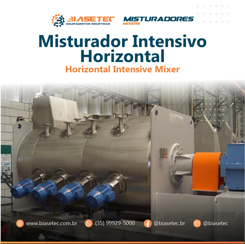 O Misturador Intensivo Horizontal é um equipamento de alta eficiência de mistura. Projetado e fabricado em diferentes tamanhos e em diferentes produtos. Com o objetivo de atender às demandas de cada cliente, de acordo com a sua necessidade.