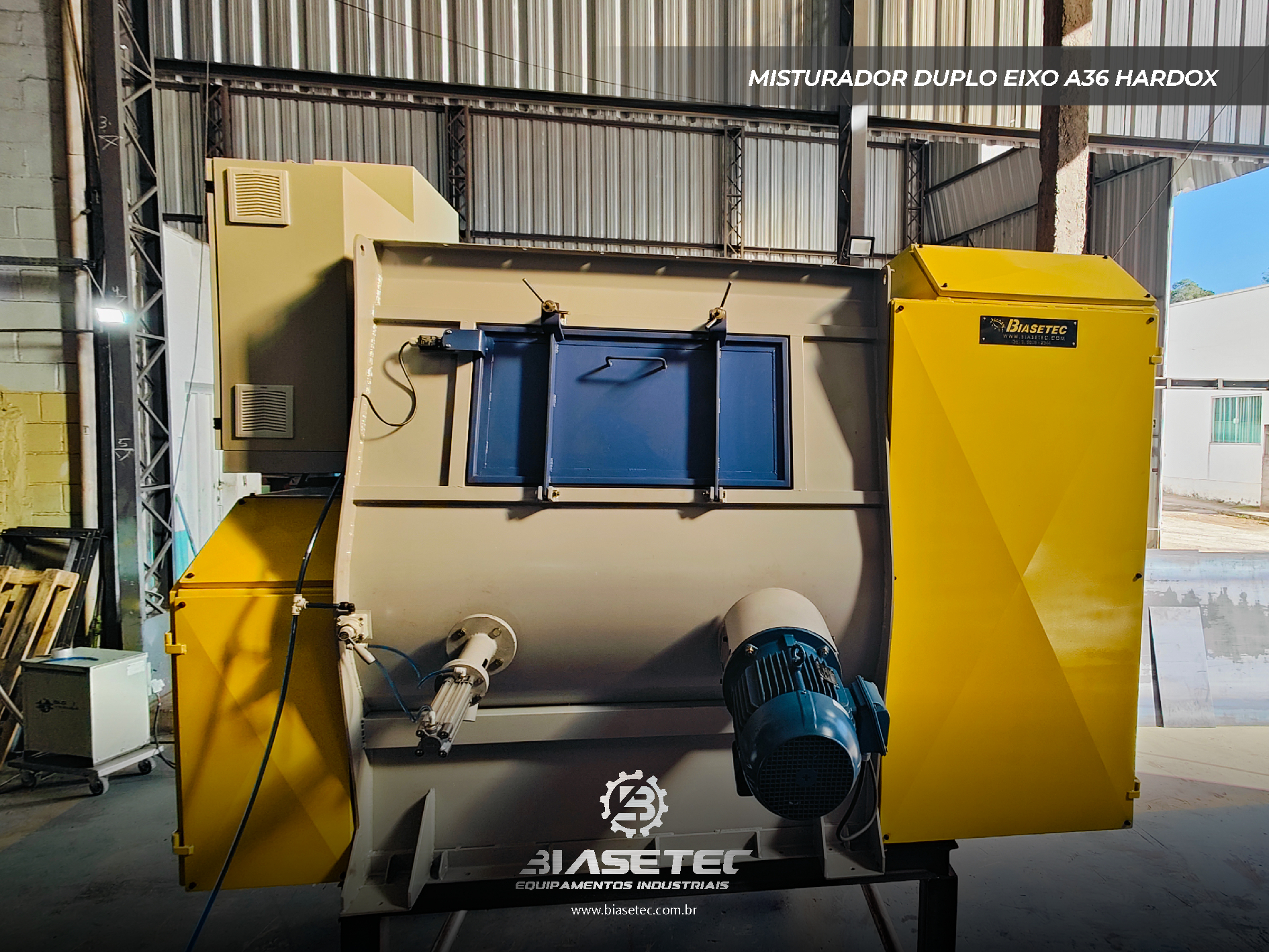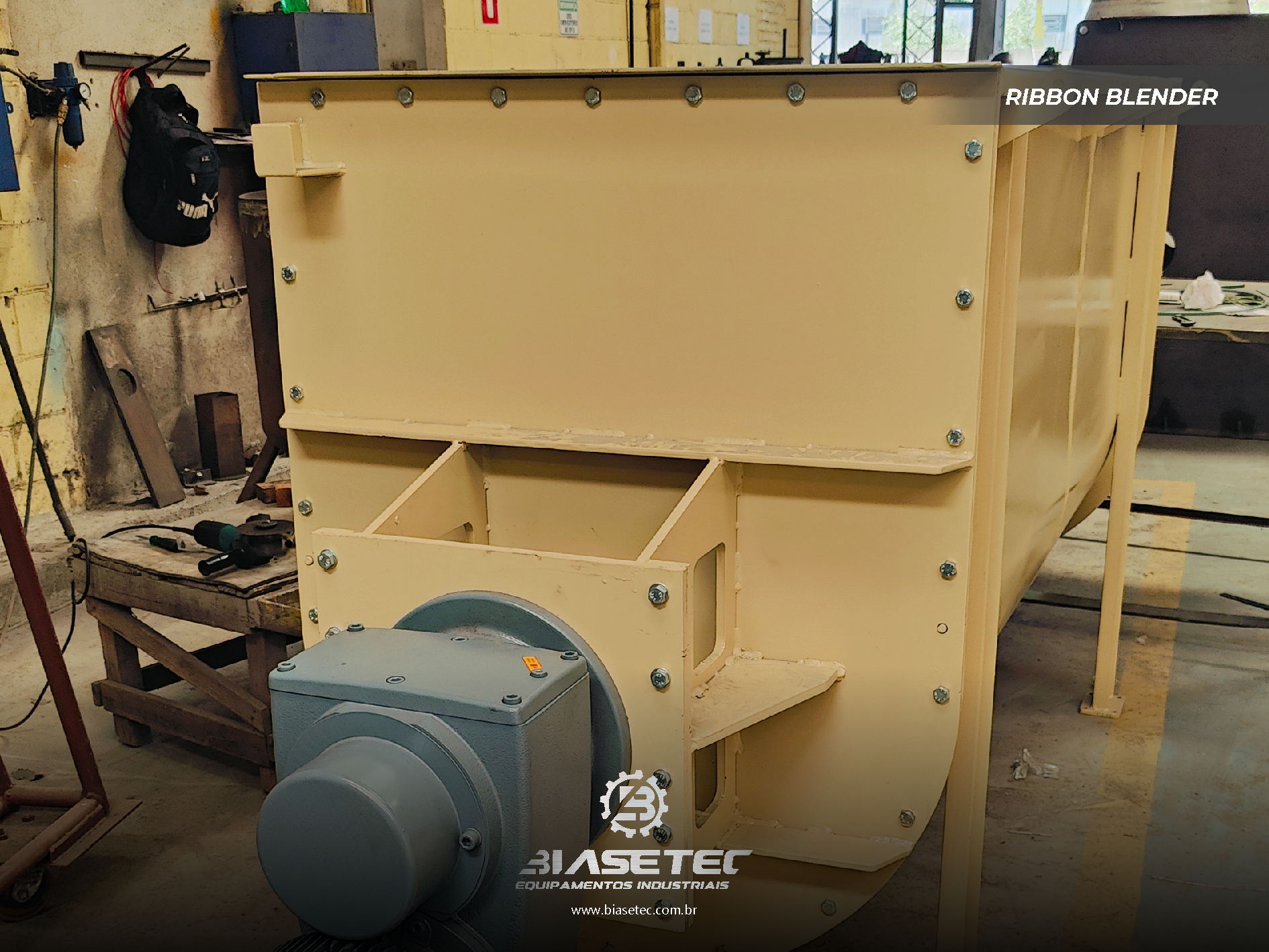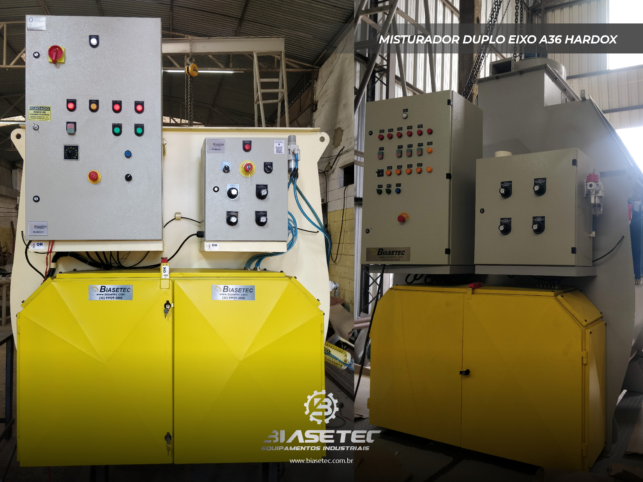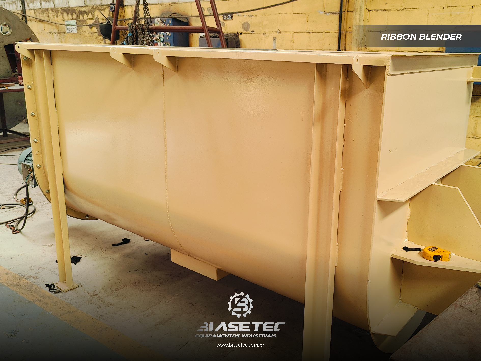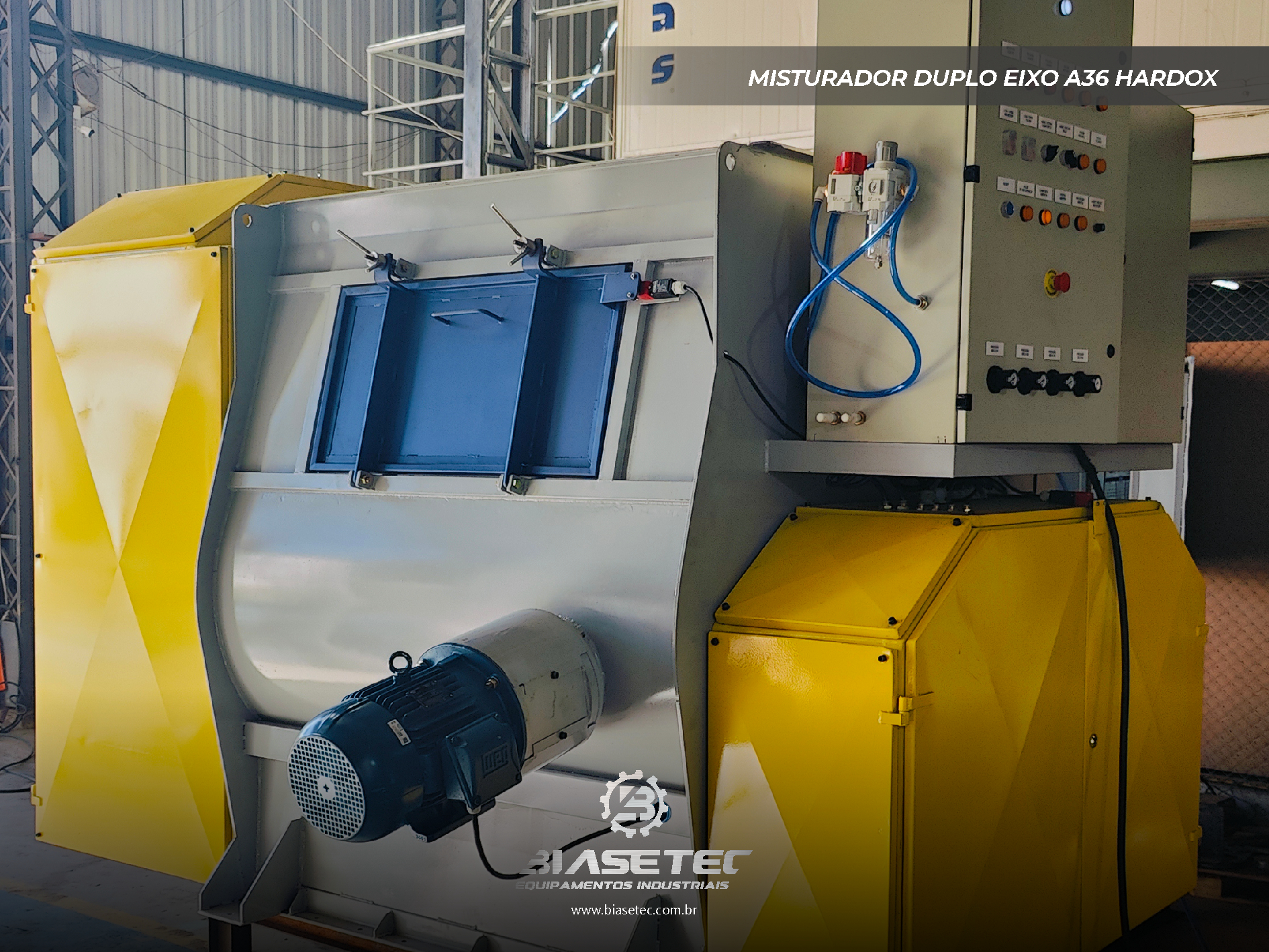 Misturador de baixa intensificação, ideal para pós leves e com boa fluidez. Também funciona como reservatório dinâmico para produtos que empedram ou possuem densidade e granulometria distintas. Pode incluir moegas, plataformas, guarda-corpo, telas, raspadores sistema de exaustão, conforme o projeto.