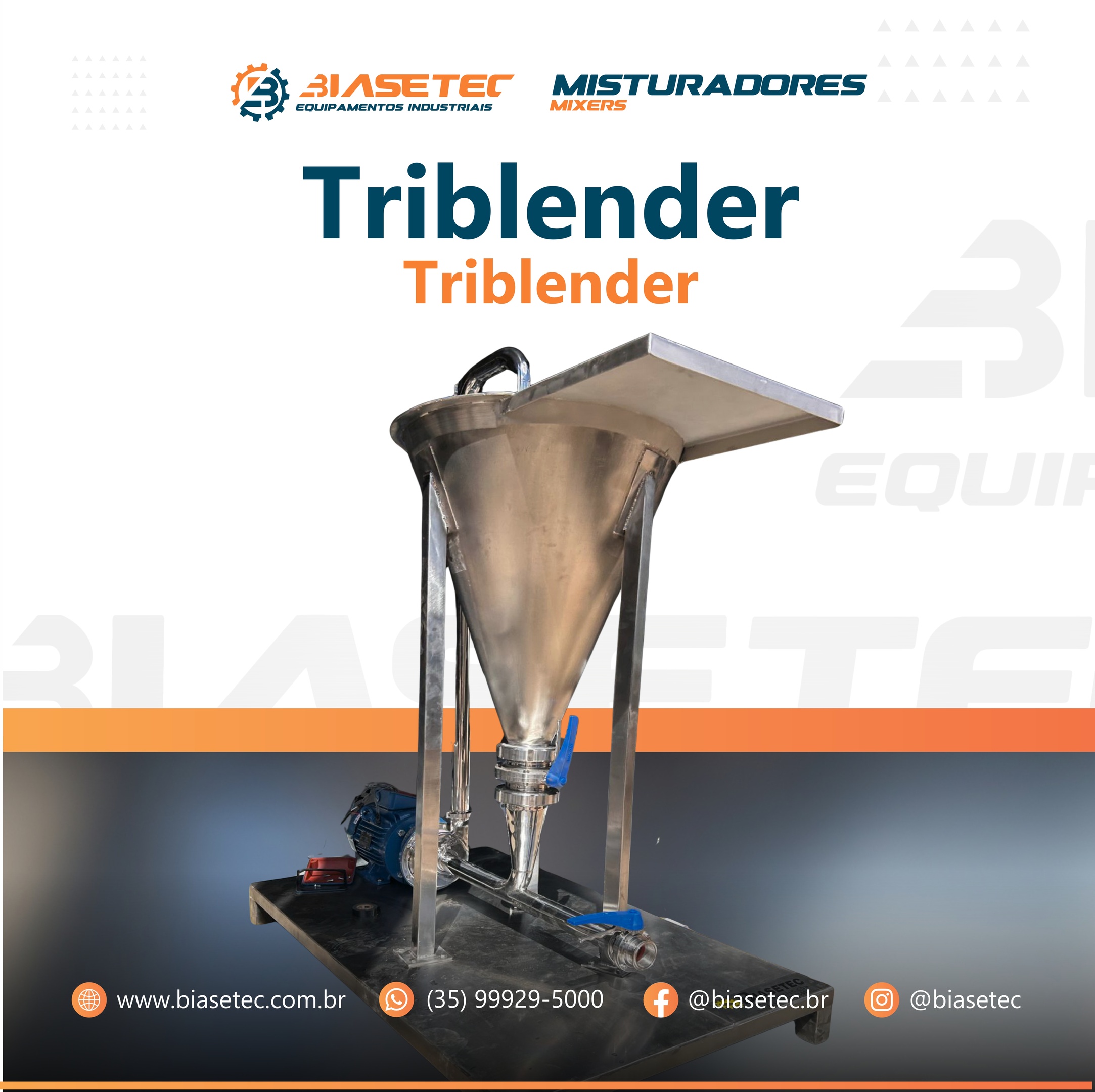 O triblender é um misturador utilizado para homogeneização de pós e líquidos. Garante eficiência da mistura, fácil higienização, rapidez, com flexibilidade no uso.
