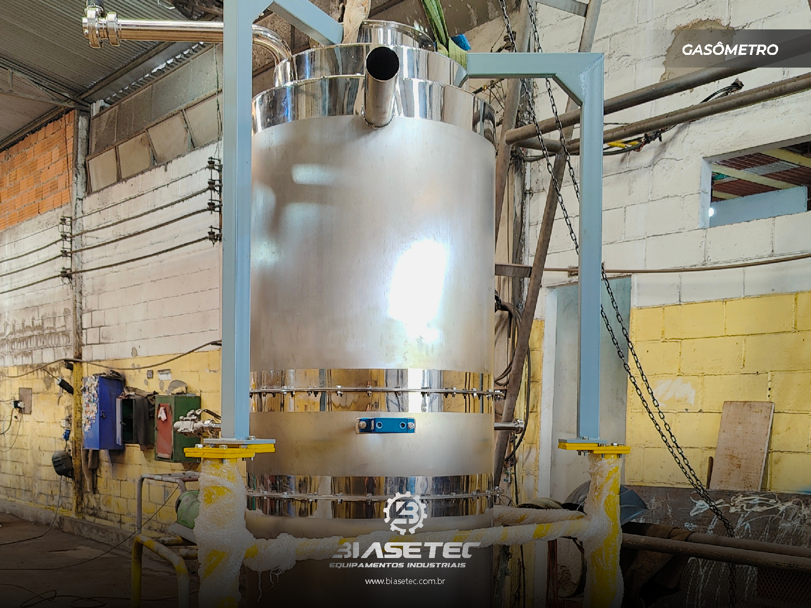 Os gasômetros são equipamentos destinados ao armazenamento e controle de gases em baixa pressão, garantindo segurança e regularidade no fornecimento para processos industriais. Podem ser do tipo fixo ou telescópico, construídos em aço carbono ou aço inoxidável, com sistemas de vedação que asseguram o armazenamento seguro e estável. Além de estocar, também permitem compensar variações de pressão e volume, mantendo a regularidade no fluxo de gás.